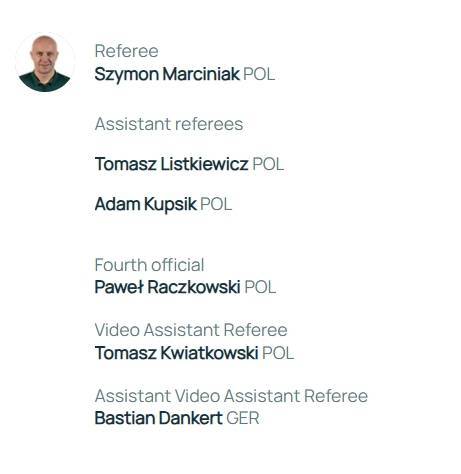 助理裁判:托马斯-利斯特凯维奇(波兰)、亚当-库普西克(波兰)